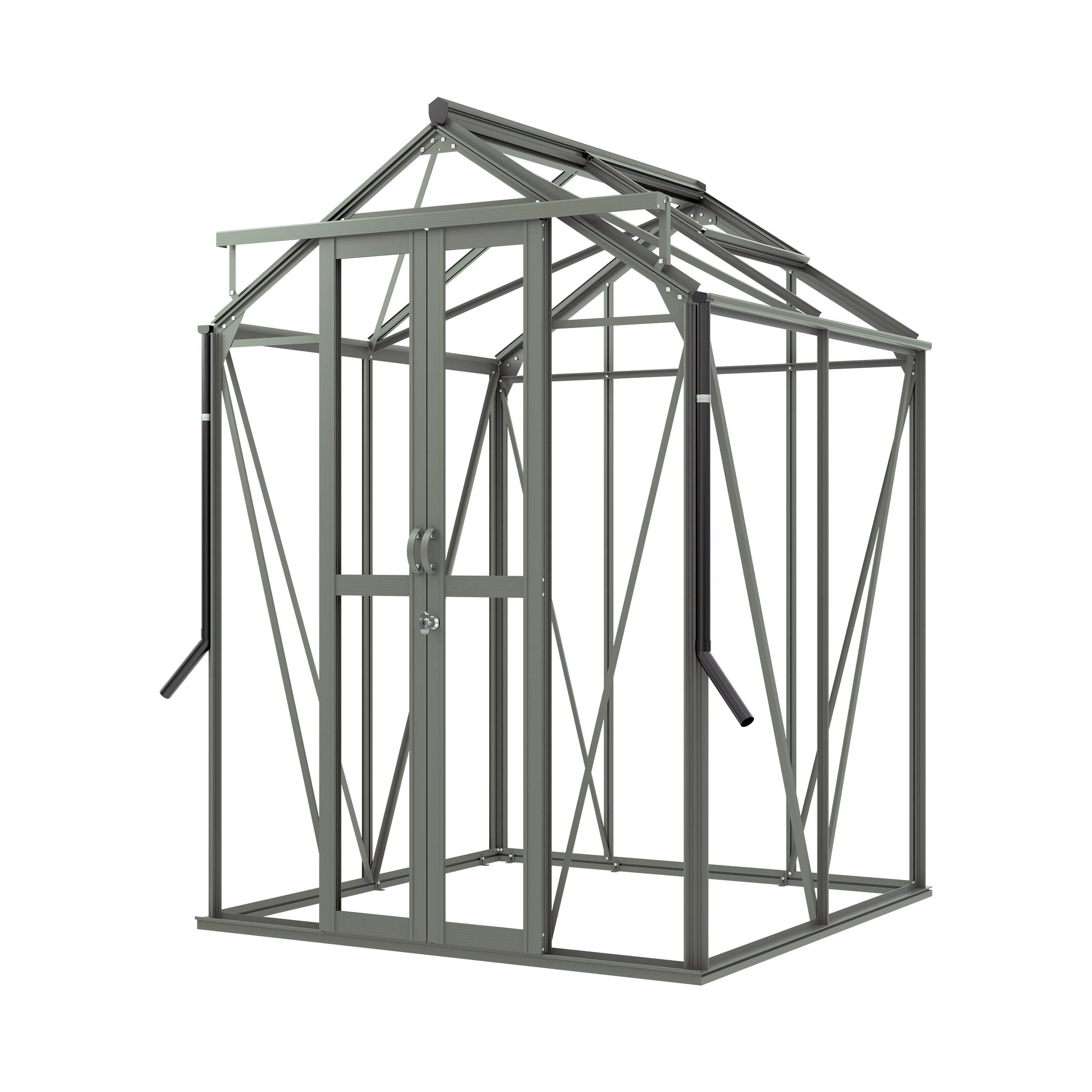 Das Gewächshaus Anne I in Grün-Grau ist mit einem Dachfenster ausgestattet, das über einen Kipphebel verfügt. Optional ist auch ein automatischer Fensteröffner erhältlich. Dieser öffnet das Fenster automatisch auf Basis des stufenlos einstellbaren Temperaturreglers. So werden deine Pflanzen auch belüftet, wenn du nicht in der Nähe bist. Mit einer Firsthöhe von 211 cm bietet dieses Gewächshaus eine komfortable Arbeitshöhe, sodass Sie bequem gärtnern können. Außerdem sind praktische Zubehörteile erhältlich, wie Pflanzspiralen, Topfhalter und Anzuchtkästen.