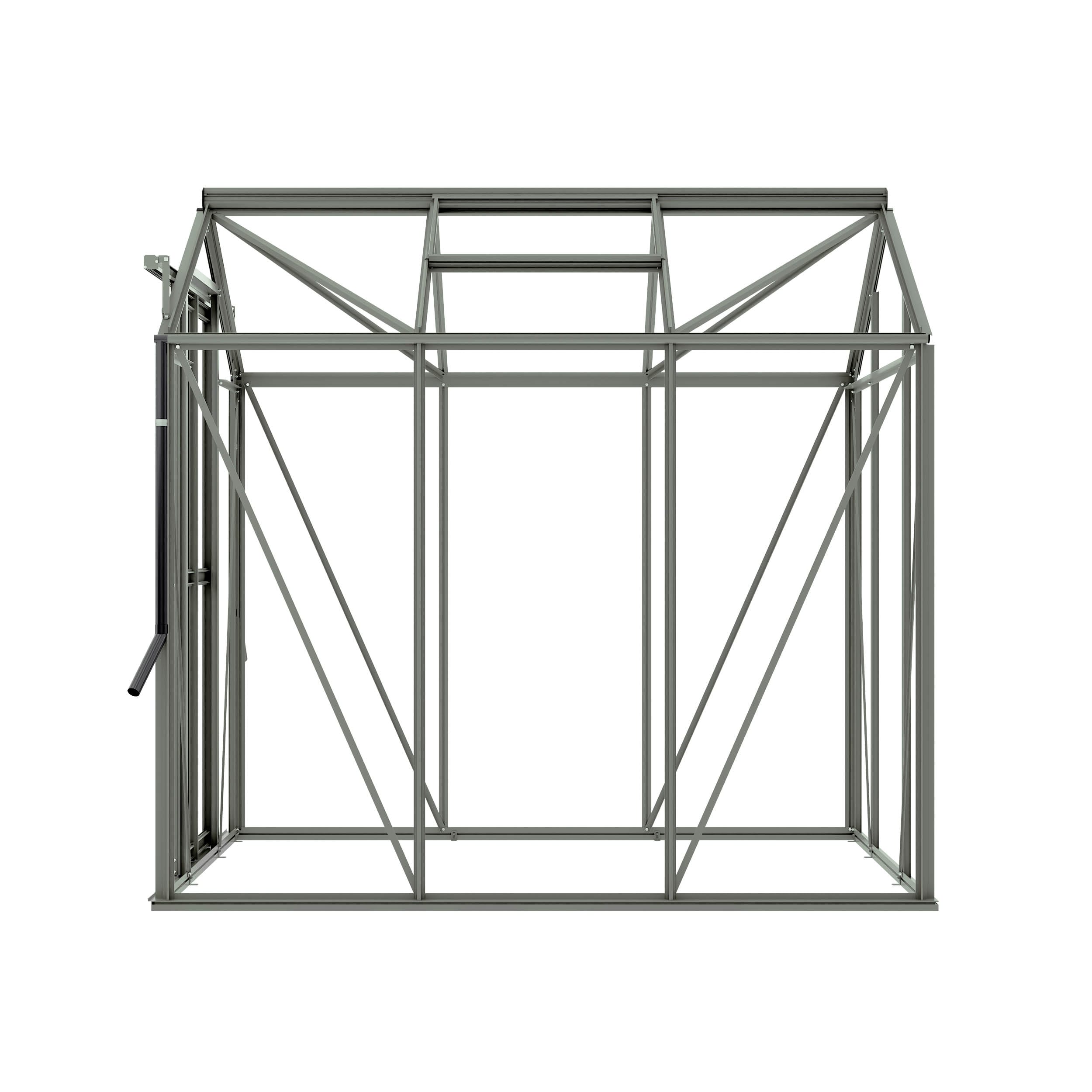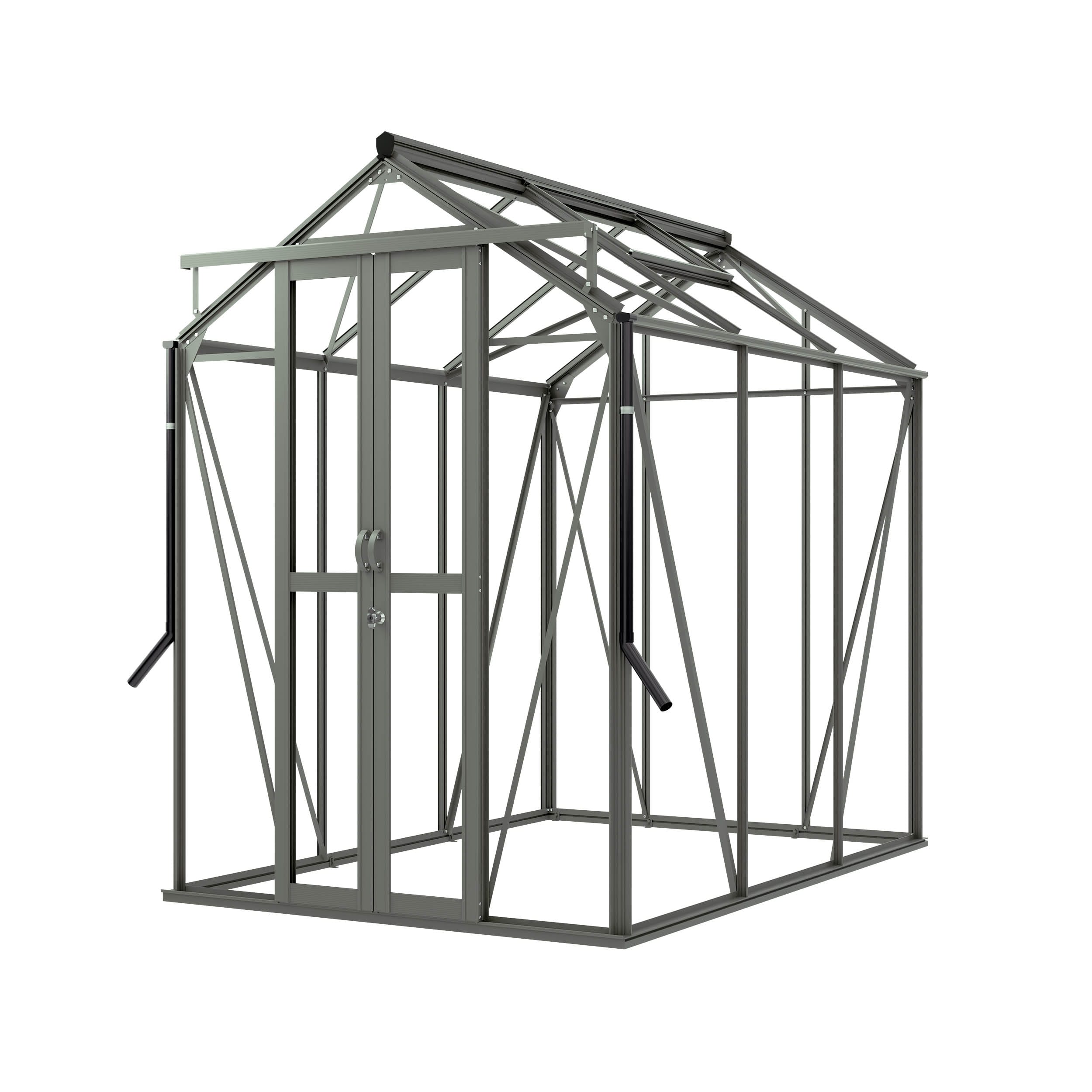 Das Aluminiumgewächshaus verfügt über eine doppelte Schiebetür und hat eine Fläche von ca. 3,3 m². Mit einer Firsthöhe von gut 2,11 Metern bietet dieses Gewächshaus eine komfortable Arbeitshöhe, sodass Sie mit Freude gärtnern können.