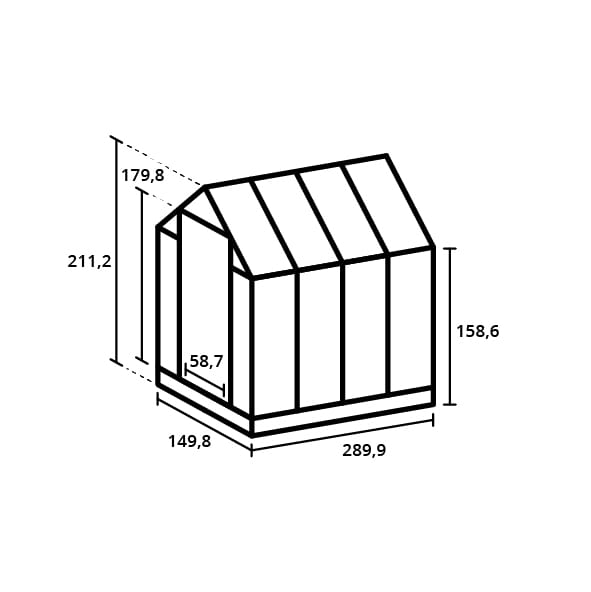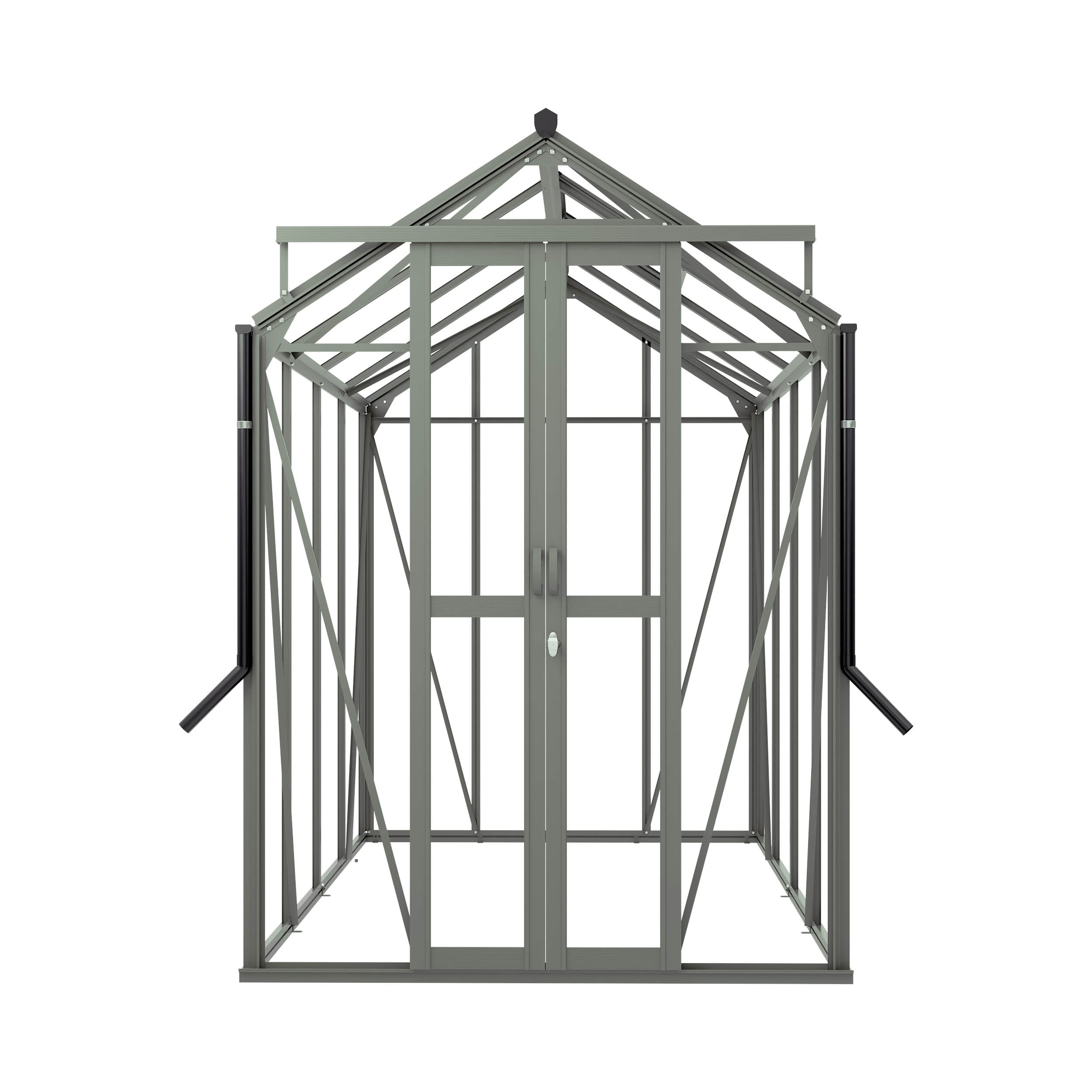 Das Aluminiumgewächshaus verfügt über eine doppelte Schiebetür und hat eine Fläche von ca. 4,3 m². Mit einer Firsthöhe von gut 2,11 Metern bietet dieses Gewächshaus eine komfortable Arbeitshöhe, sodass Sie mit Freude gärtnern können.
