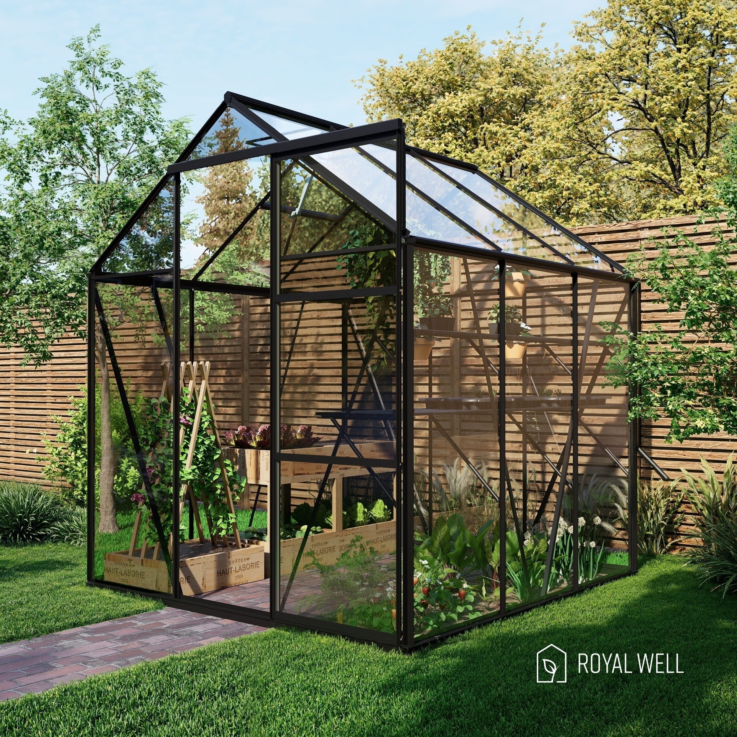 Das Gewächshaus „Kate I Schwarz“ von Royal Well ist die ideale Wahl sowohl für Anfänger als auch für erfahrene Gärtner, die ein praktisches und vielseitiges Gewächshaus suchen. Dieses Einsteigermodell mit Spitzdach und einer Schiebetür bietet alles, was du für eine erfolgreiche Anzucht benötigst.