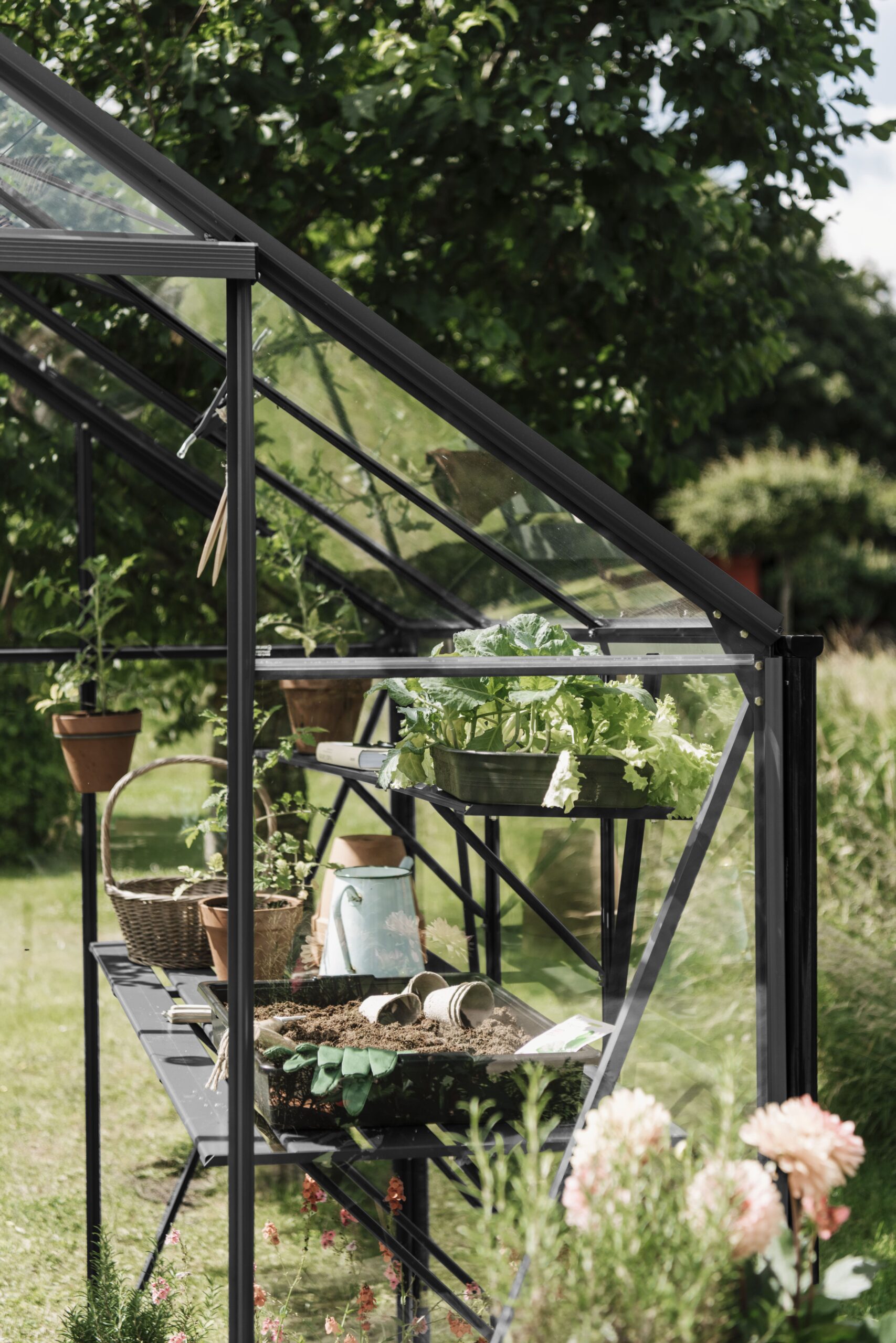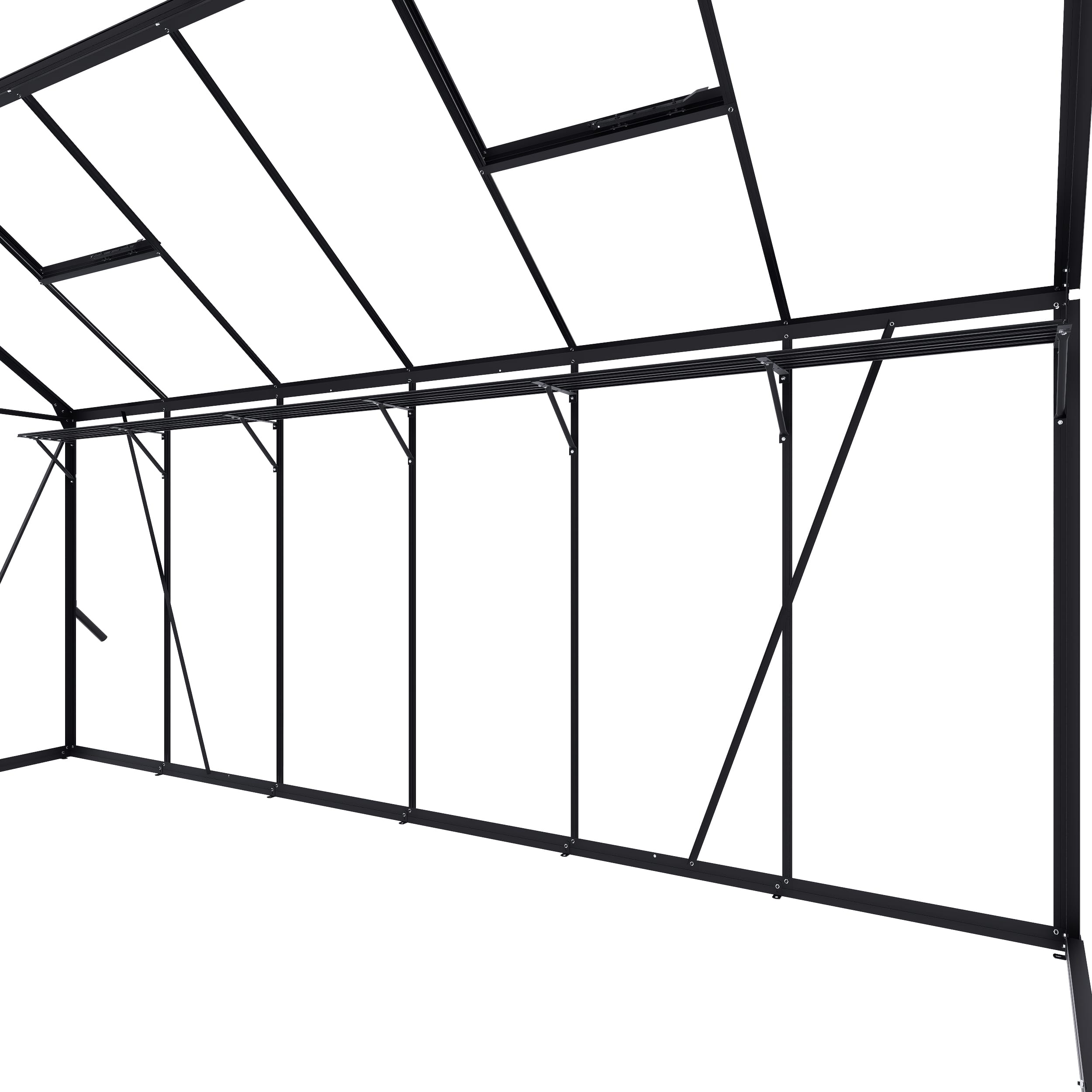 Nutze den Platz in deinem Gewächshaus optimal aus. Ein Kulturregal schafft Platz in deinem Gewächshaus für Anzucht-Töpfe, Gartenscheren, ein Stück Schnur, Samentütchen und alle anderen kleineren Anzuchtutensilien. Du kannst darauf Samen vorziehen oder junge Pflanzen wachsen lassen. Die Konstruktion besteht aus zwei Längsträgern, Querträgern und Streben. Eine stabile Verbindung mit dem Gewächshausrahmen wird mithilfe von (Hammerkopf-)Schrauben und Muttern der Standardgröße M6 hergestellt. Die Höhe kannst du selbst bestimmen, da das Regal verstellbar ist. Das Kulturregal ist 22,5 cm tief und passt zu jeder Gewächshausgröße, sodass der Innenraum (die Tiefe) des Gewächshauses optimal ausgenutzt wird.