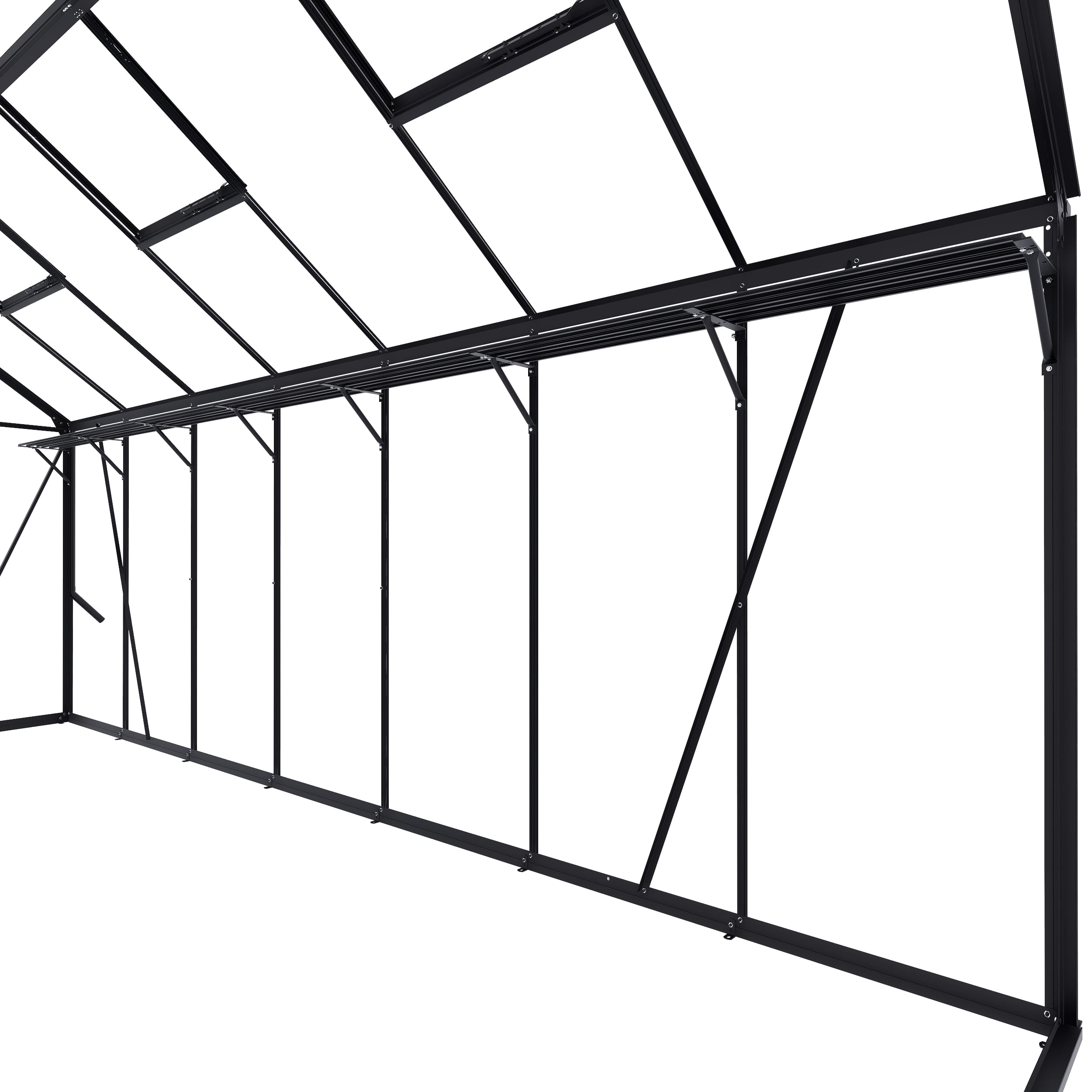 Die Konstruktion besteht aus zwei Längsträgern, Querträgern und Streben. Eine stabile Verbindung mit dem Gewächshausrahmen wird mithilfe von (Hammerkopf-)Schrauben und Muttern der Standardgröße M6 hergestellt. Die Höhe kannst du selbst bestimmen, da das Regal verstellbar ist. Das Kulturregal ist 22,5 cm tief und passt zu jeder Gewächshausgröße, sodass der Innenraum (die Tiefe) des Gewächshauses optimal ausgenutzt wird. Selbstverständlich ist das Royal Well-Kulturregal in der Farbe deines Gewächshauses ausgeführt.