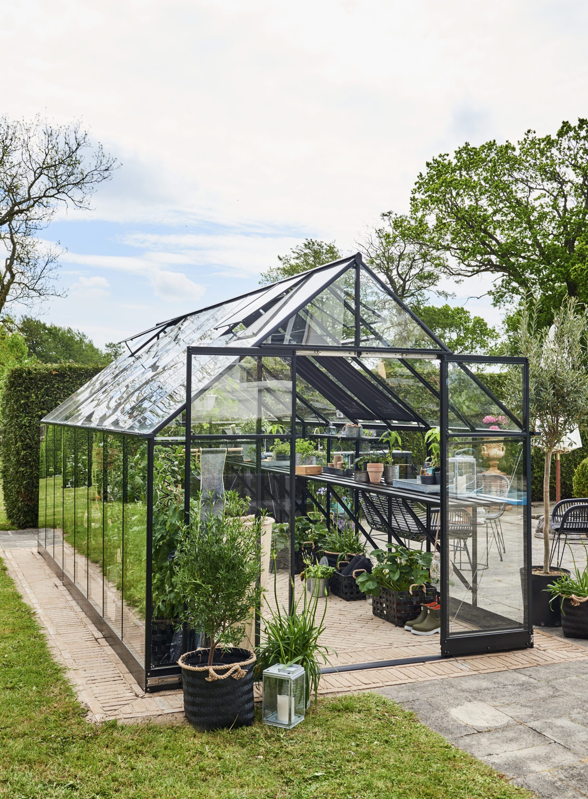 De Qube is een praktische kas met zeer fraaie uitstraling. Het gehele kasframe wordt samengesteld uit één aluminium vierkant (Qube) profiel. Het veiligheidsglas wordt vastgezet met tape en dubbele beglazingsstrip. Deze kas heeft twee 80 mm brede goten welke voorzien zijn van aansluitstukken voor de regenpijpen. Als accessoire is een set met 2 regenpijpen Ø 40 mm (tot op het maaiveld) leverbaar, bestel deze los mee. De schuifdeur met handgreep is 180 cm hoog en voorzien van een telescopische deurrail. De drempel is zeer laag waardoor de kas goed toegankelijk is. De Qube is standaard voorzien van een zwarte coating. De nokbalk, goten en optionele fundering worden geleverd in meerdere koppelbare delen. Voor de Qube is optioneel een zwart gecoate kweektafel leverbaar. Deze kweektafel is ca. 60 cm breed, de lengte is gelijk aan de binnenmaat van de langste zijde van de kas.