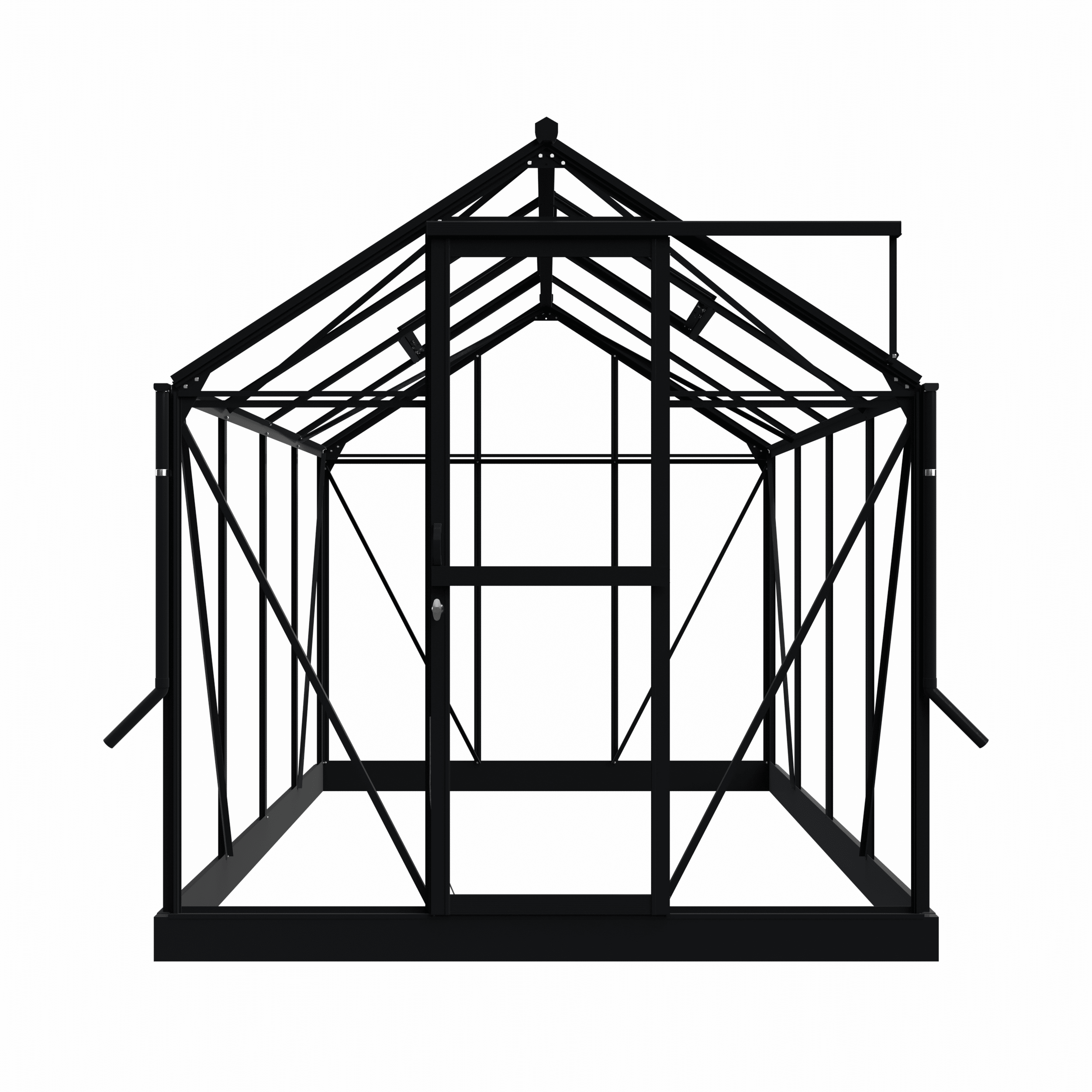 This greenhouse is finished in black (RAL 9005) and has a surface area of approx. 6 m². The 3 mm thick safety glass is securely fixed to the inside using cushioning foam tape. On the outside, the glass is finished with PVC glazing strips. These are easy to install and match the colour of the profiles. The profiles have an elegant matt finish. The Mary II greenhouse is also available in green-grey (RAL7009) and white (RAL9010).