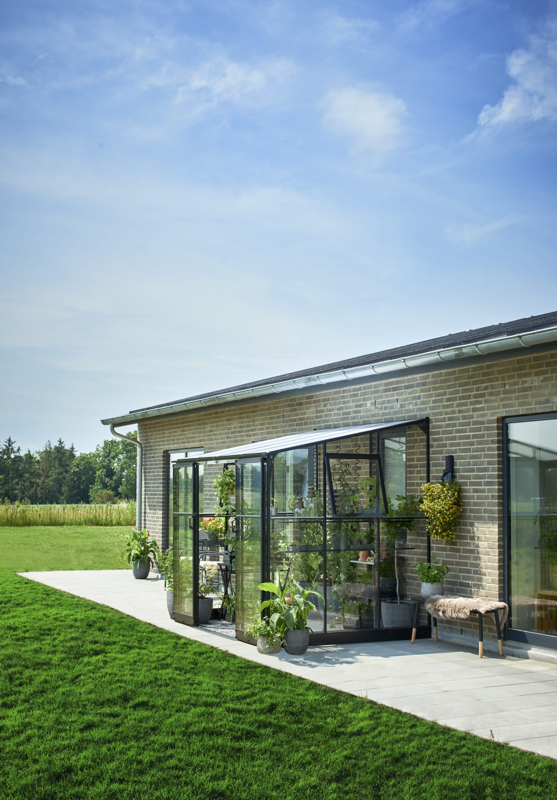 De Qube Lean-To 68 is een praktische muurkas met zeer fraaie uitstraling. Het gehele kasframe wordt samengesteld uit één aluminium vierkant (Qube) profiel. Het veiligheidsglas wordt vastgezet met tape en dubbele beglazingsstrip. Het dak van de kas is voorzien van 6 mm dik opaal polycarbonaat wat een isolerende functie heeft en prettig diffuus licht in de muurkas geeft. Deze kas heeft een 80 mm brede goot aan de voorzijde welke voorzien is van aansluitstukken voor een regenpijp. Als accessoire is een regenpijpset Ø 40 mm (tot op het maaiveld) leverbaar. De dubbele schuifdeur met handgreep is 184 cm hoog en voorzien van een telescopische deurrail. De drempel is zeer laag waardoor de kas goed toegankelijk is. De Qube Lean-To 68 is standaard voorzien van een zwarte coating. De nokbalk, goten en optionele fundering worden geleverd in meerdere koppelbare delen. Voor alle modellen van de Qube is optioneel een zwart gecoate kweektafel leverbaar. Deze tafels zijn ca. 60 cm breed en loopt over de lengte van de zijgevel van de kas. Voor de Qube is een 12 cm hoge stalen fundering optioneel verkrijgbaar en wordt geleverd in de kleur van het frame: zwart gecoat. Het gebruik van een stabiele fundering is noodzakelijk voor het optimaal laten functioneren van de Qube en biedt de juiste basis voor jarenlang kweekplezier!