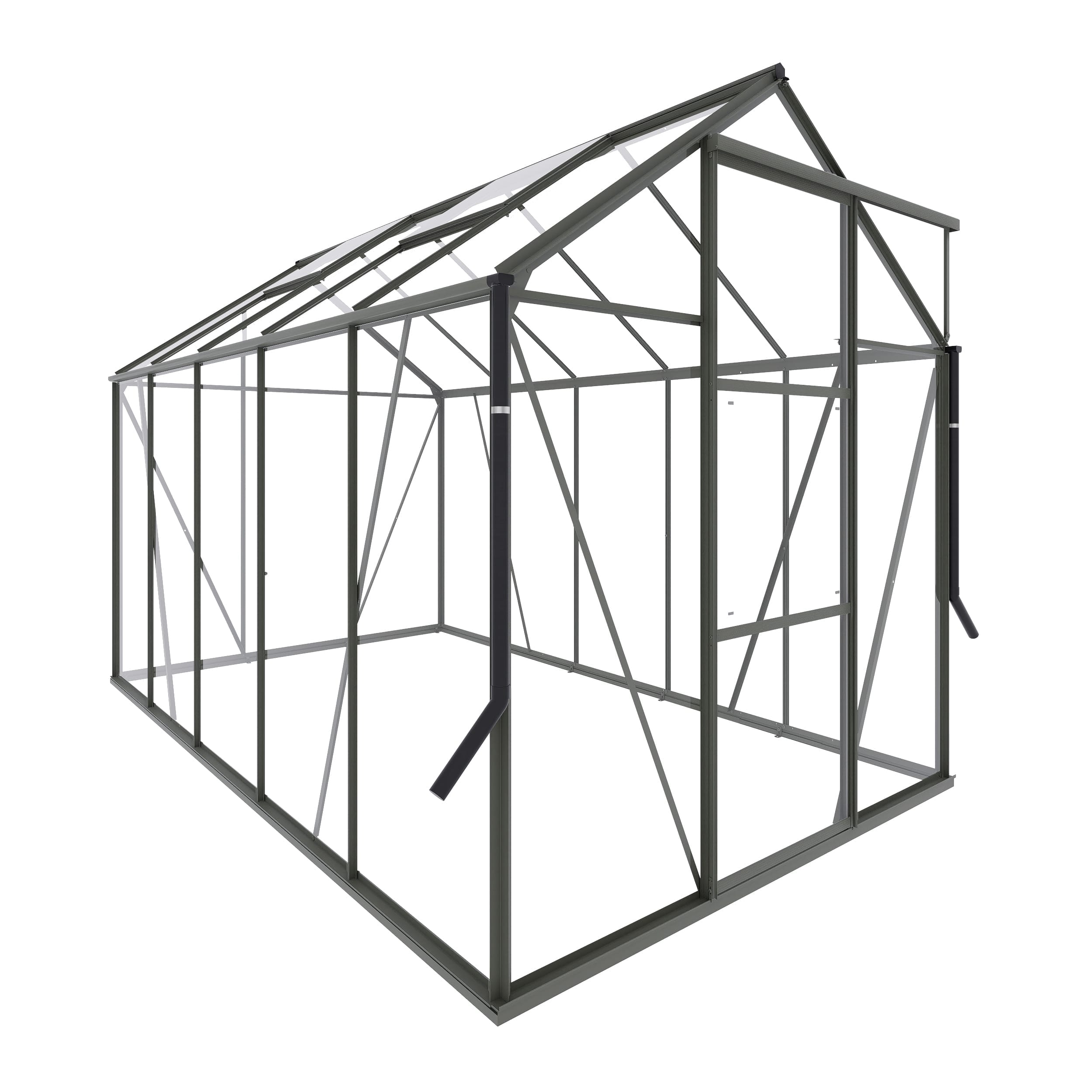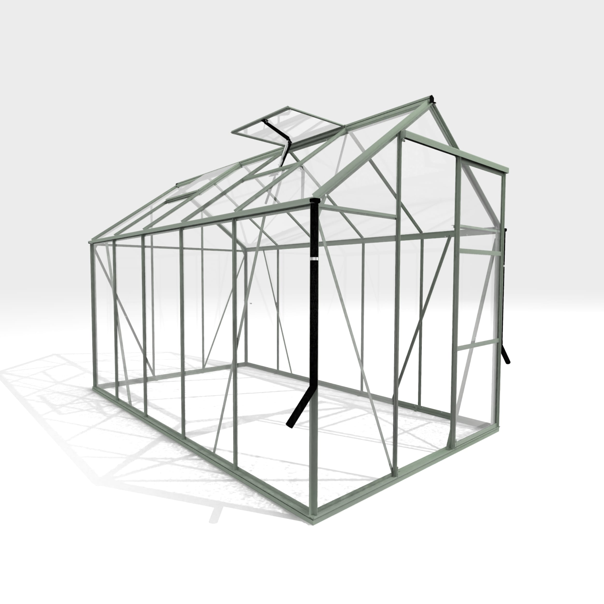 Tuinkas Kate III Groengrijs van Royal Well is de ideale keuze voor zowel beginnende als ervaren kwekers die op zoek zijn naar een praktische en veelzijdige kas. Dit instapmodel met puntdak en schuifdeur biedt alles wat je nodig hebt voor een succesvolle kweekervaring. Deze kas is uitgevoerd in de kleur groengrijs (RAL 7009) en heeft een oppervlakte van 6 m². Het 3 mm dikke veiligheidsglas wordt stevig bevestigd met dempend foamtape aan de binnenzijde en PVC beglazingstrips aan de buitenzijde, die eenvoudig te installeren zijn en uitgevoerd in de kleur van de profielen. De geïntegreerde fundering van tuinkas Kate zorgt voor een comfortabele instap. Let op! Plaats je de kas op onverharde grond? Vergeet dan niet om losse funderingsankers mee te bestellen in de kleur van het frame. Daarnaast is de kas voorzien van dakgoten, compleet met twee regenpijpen, waarmee je eenvoudig regenwater kunt opvangen. Kate III groengrijs heeft 2 dakramen en met een nokhoogte van 217 cm (incl. fundering) biedt deze kas een comfortabele werkhoogte, zodat je met gemak kunt kweken. Tuinkas Kate is verkrijgbaar in vijf verschillende dieptematen, met oppervlakken variërend van 3,7 tot 8,3 m². Het model is leverbaar in drie kleuren: wit, groengrijs en zwart – en de profielen hebben een elegante matte afwerking. Of je nu klein of groot wilt kweken, tuinkas Kate biedt de ideale ruimte om jouw planten optimaal te laten groeien.