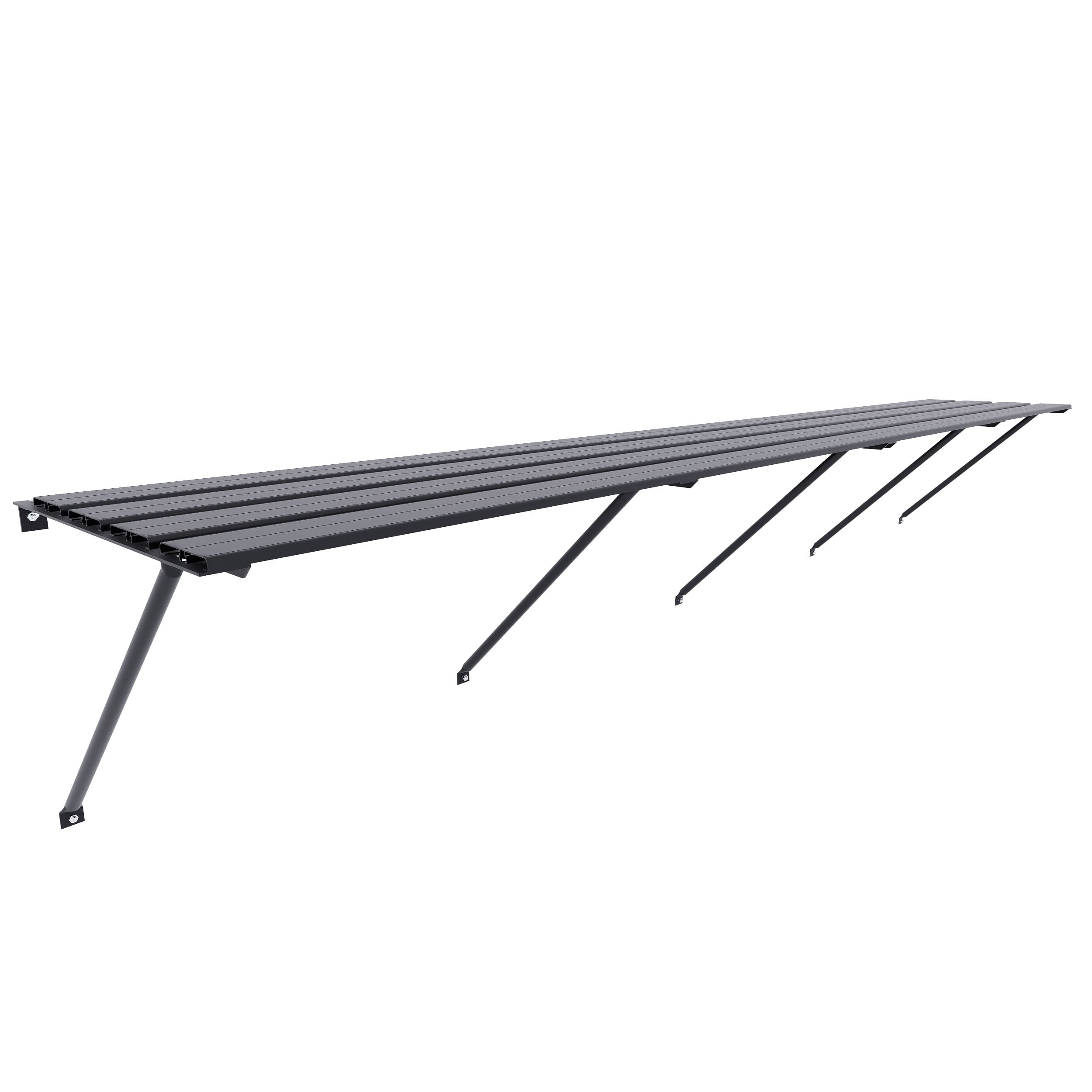 De werktafels zijn beschikbaar in 2 secties en 3 secties breedte. Elk raam aan de zijkant is een sectie. In het geval van tuinkas Kate II zwart bestaat een werktafel set uit 2x een kweektafel van 2 secties breed.