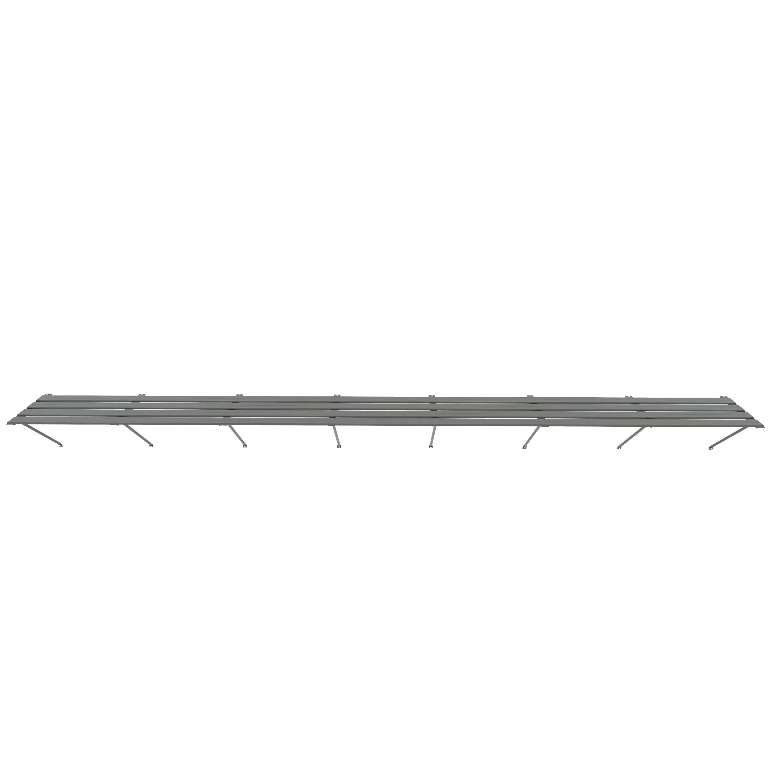 De constructie bestaat uit 4 leggers, dragers en schoren. Een solide verbinding met het kasframe wordt gemaakt met behulp van (hamerkop) bouten en moeren, standaardmaat M6. De hoogte bepaal je zelf doordat de tafel bij de montage op hoogte instelbaar is. De kweektafel is 42,5 cm diep en is bijpassend bij iedere kasmaat, zodat de binnenmaat (diepte) van de kas netjes uitgevuld wordt. Uiteraard is de Royal Well kweektafel uitgevoerd in de kleur van jouw kas.