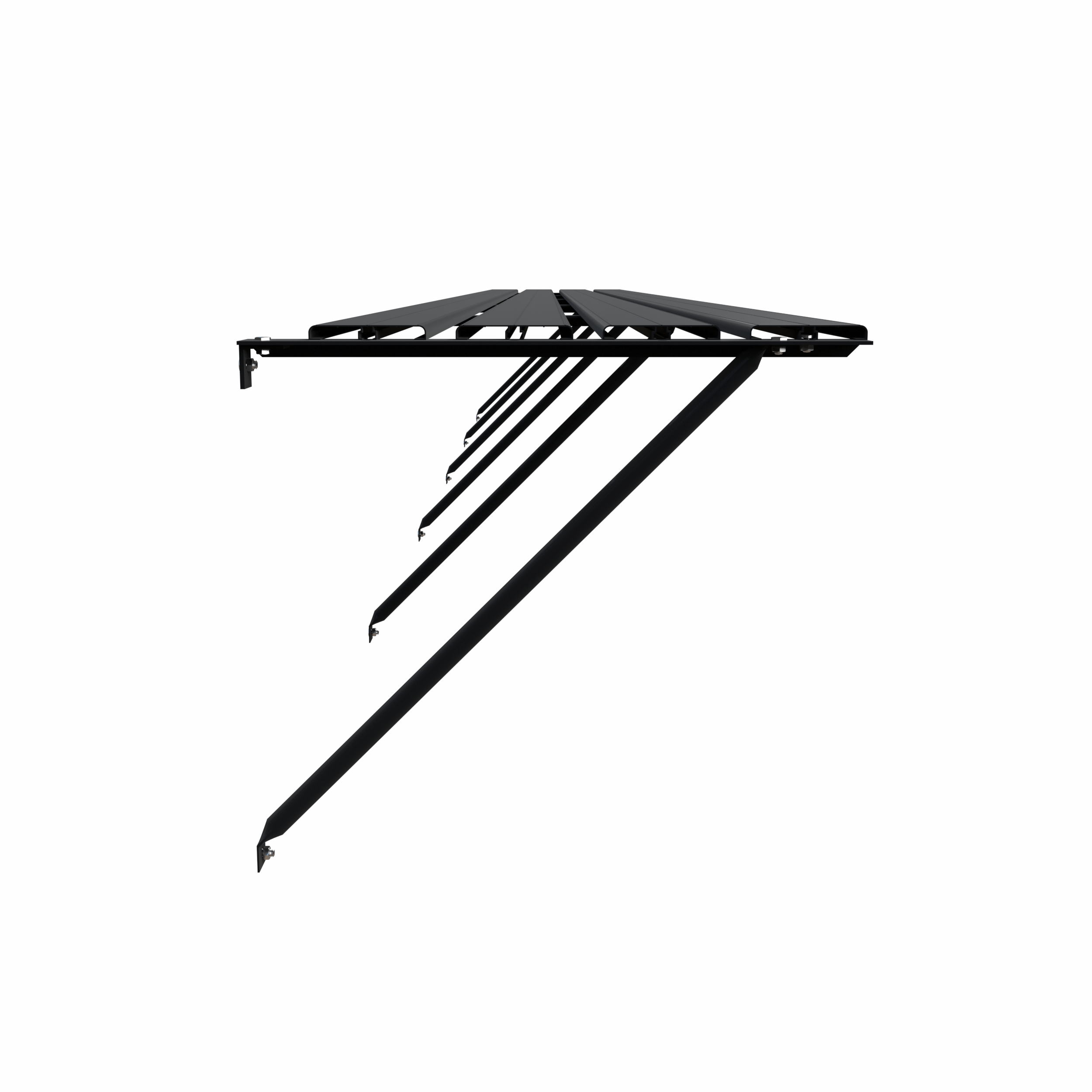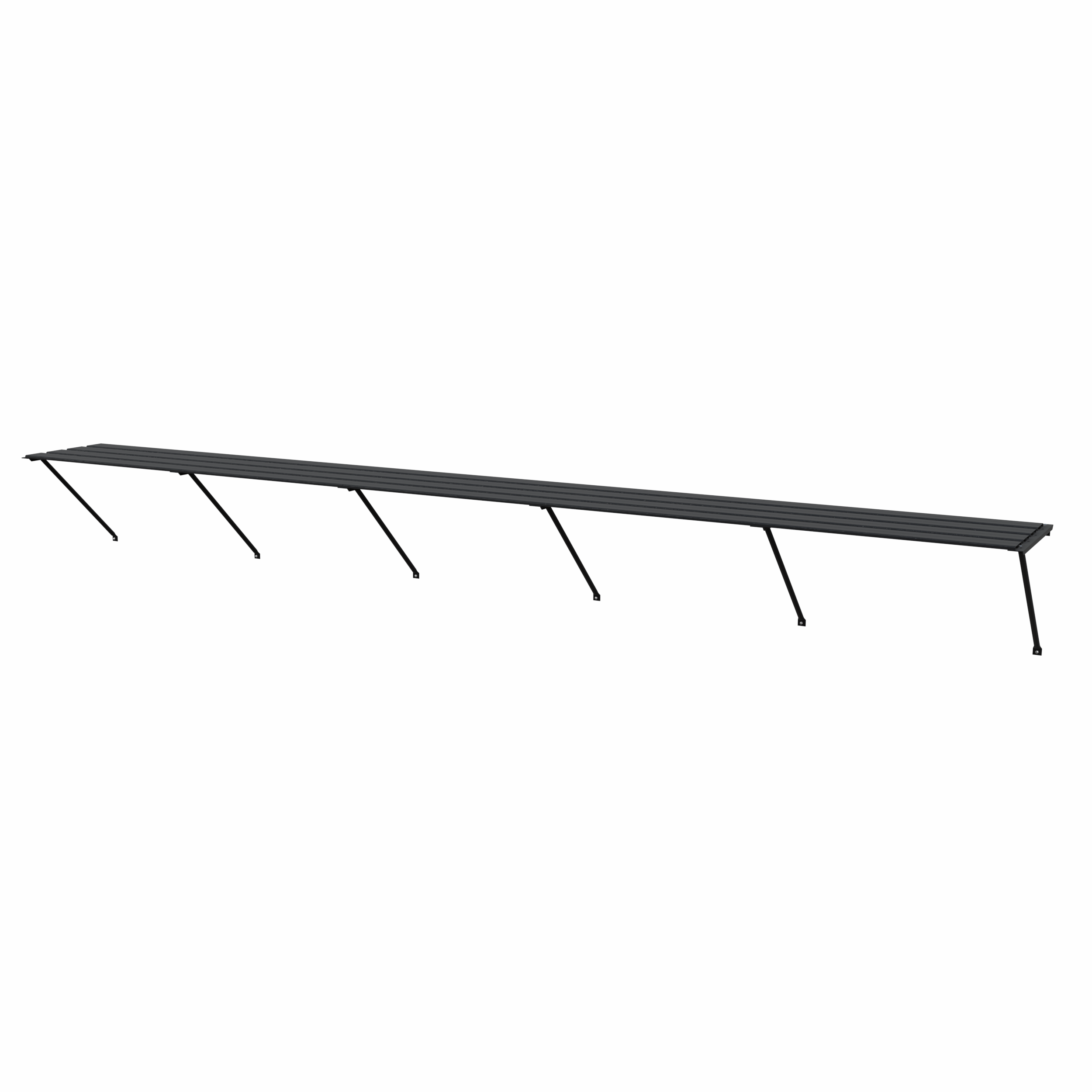 De constructie bestaat uit 4 leggers, dragers en schoren. Een solide verbinding met het kasframe wordt gemaakt met behulp van (hamerkop) bouten en moeren, standaardmaat M6. De hoogte bepaal je zelf doordat de tafel bij de montage op hoogte instelbaar is. De kweektafel is 42,5 cm diep en is bijpassend bij iedere kasmaat, zodat de binnenmaat (diepte) van de kas netjes uitgevuld wordt. Uiteraard is de Royal Well kweektafel uitgevoerd in de kleur van jouw kas.